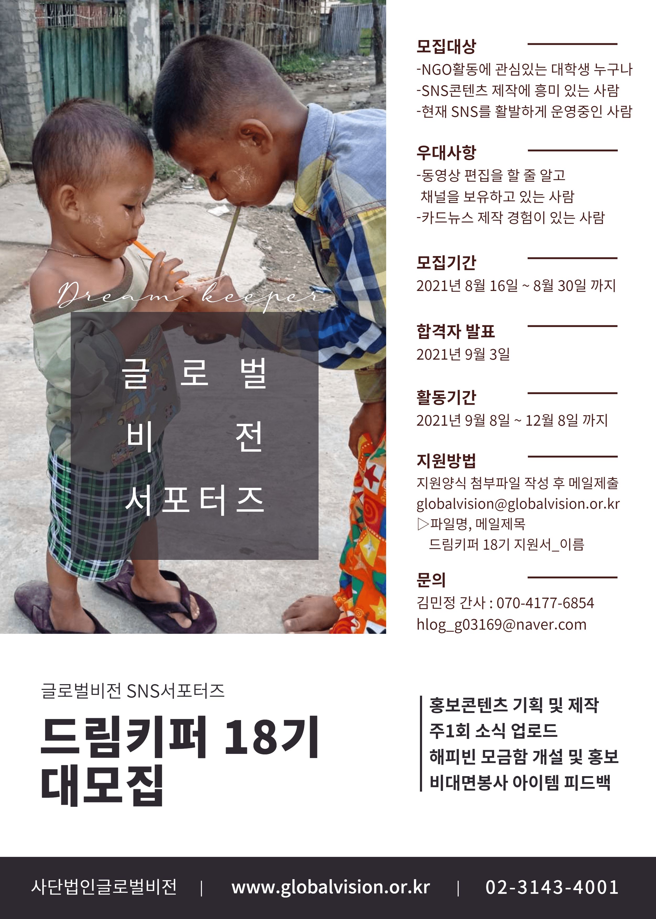 NGO 글로벌비전 서포터즈 드림키퍼 18기 모집 안내