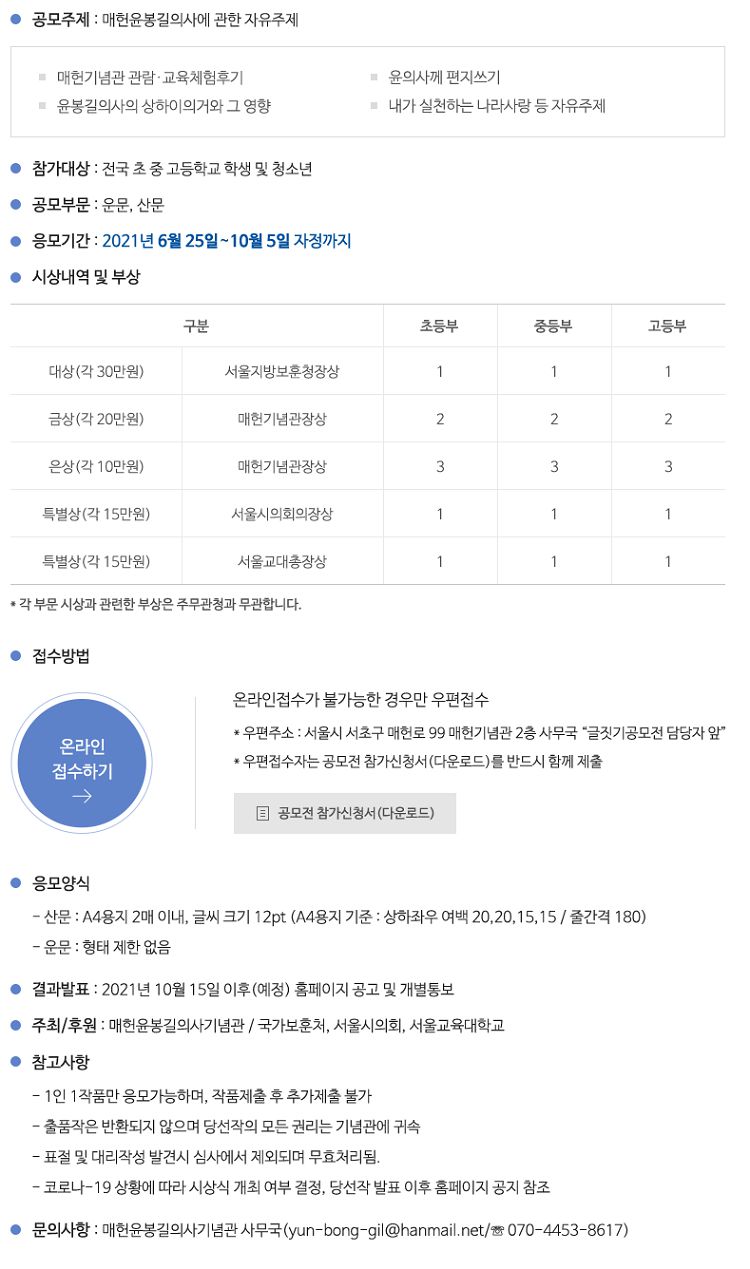2021 제14회 매헌글짓기 공모전