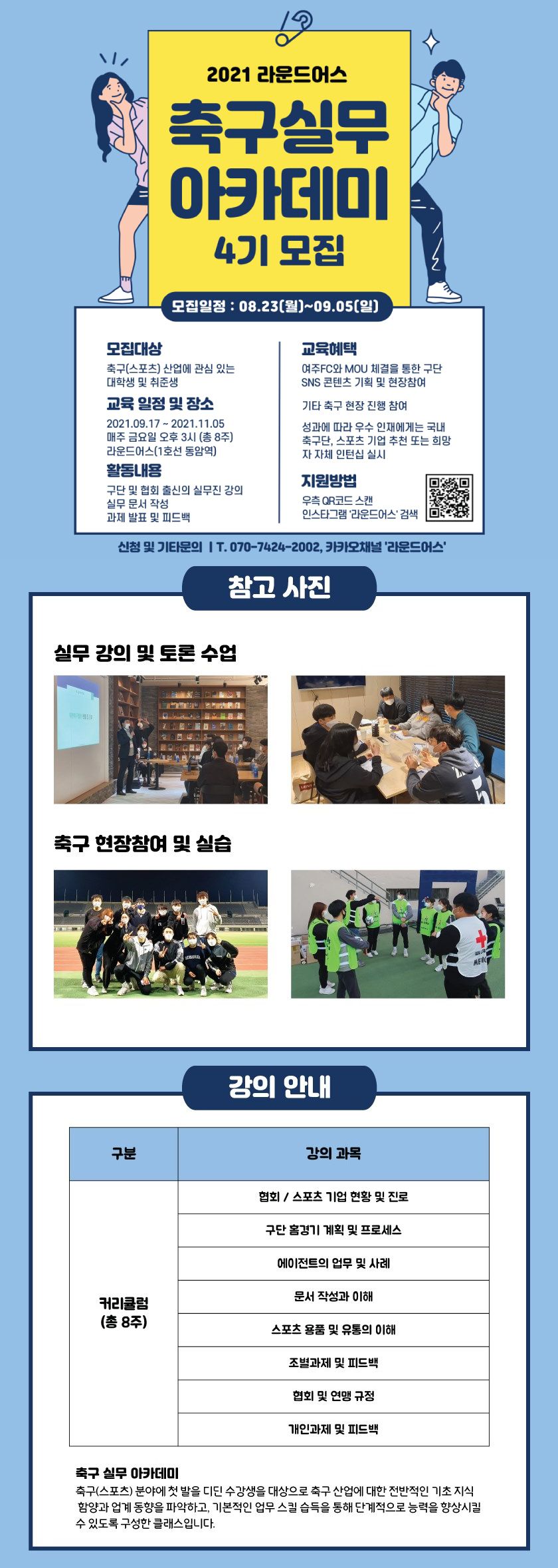 안녕하세요. 라운드어스에서 축구실무아카데미 4기를 모집합니다.
