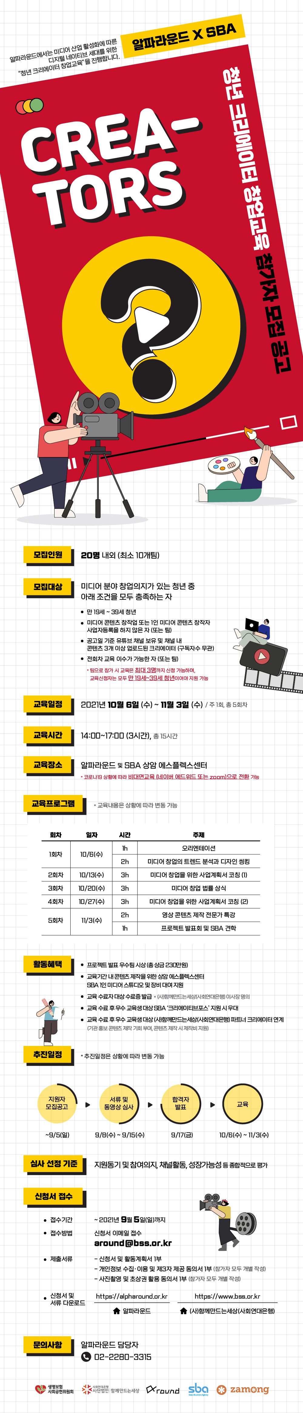 알파라운드와 SBA에서 청년 크리에이터 분들을 위해 ‘청년 크리에이터 창업교육’을 실시합니다.