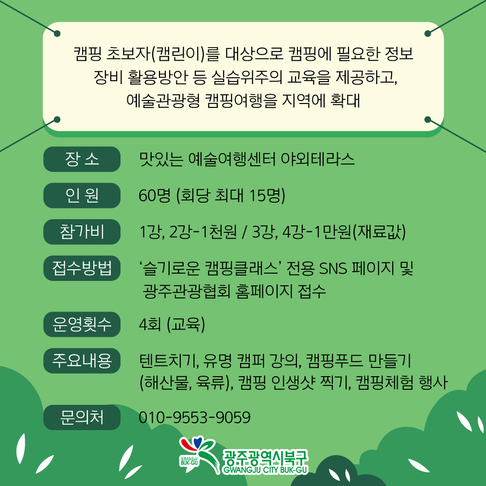 ■ 접수방법 : '슬기로운 캠핑클래스' 전용 SNS페이지 및 광주관광협회 홈페이지 및 포스터 큐알 접수