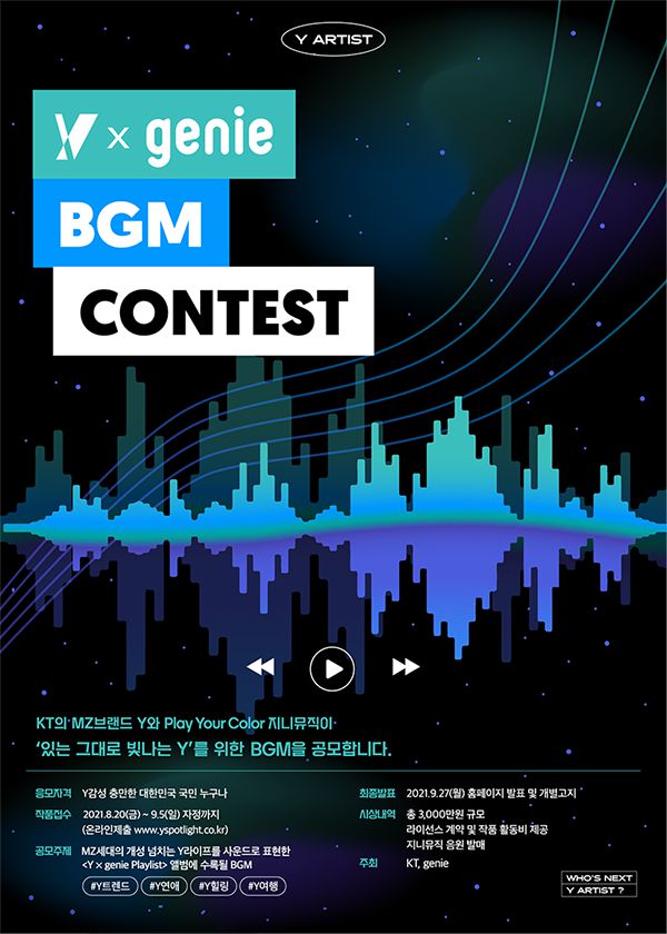 Y 아티스트를 발굴하기 위해 <Y × genie BGM 공모전>을 개최하며,