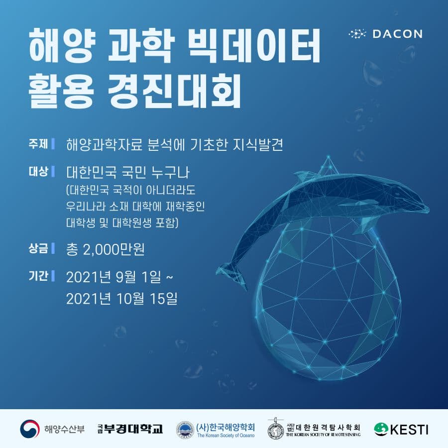 - 주관: 부경대학교, (사)한국해양학회, (사)대한원격탐사학회, (주)환경과학기술, 데이콘