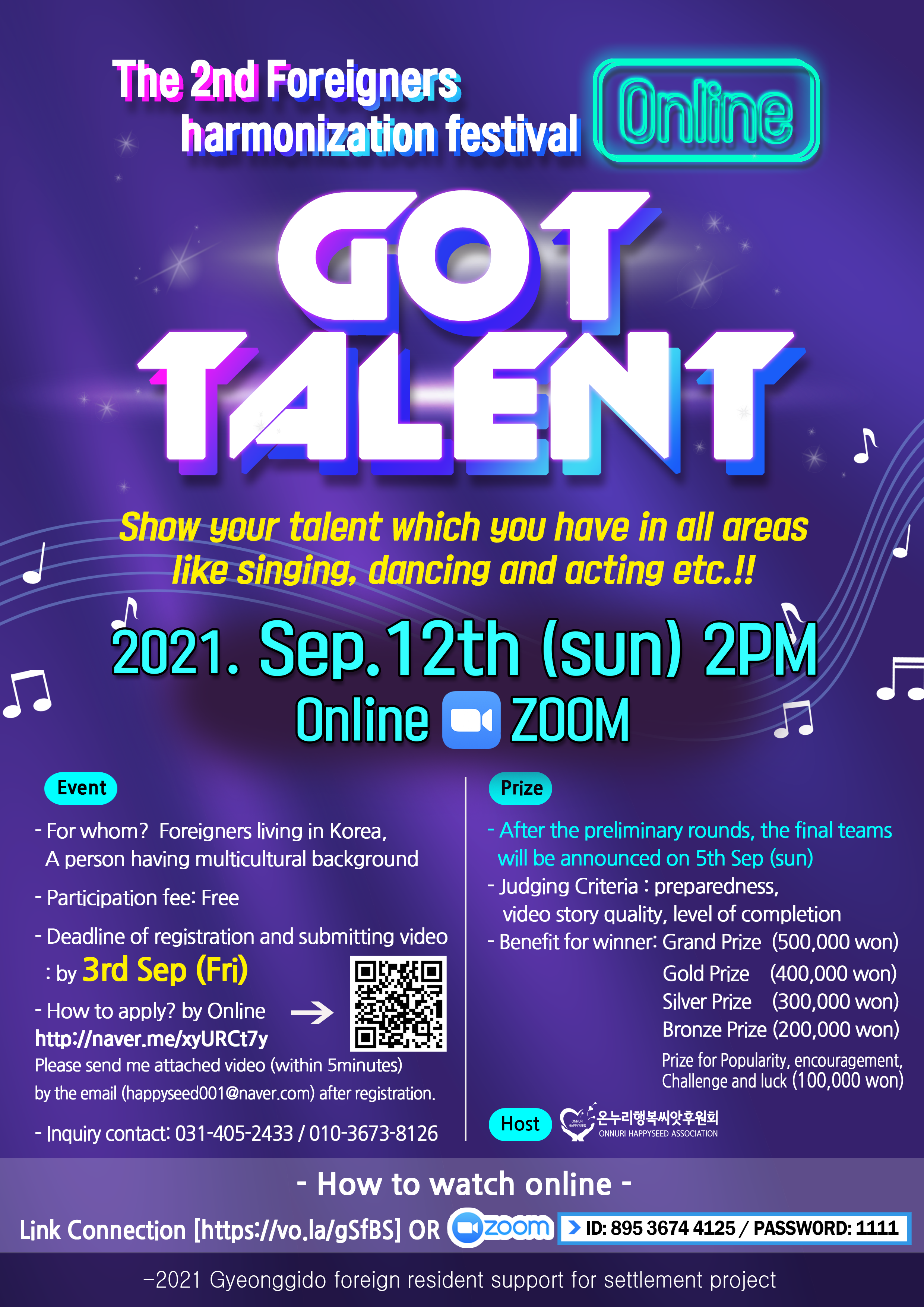 제2회 외국인 어울림 한마당 온라인 갓 탈렌트에 초청합니다.