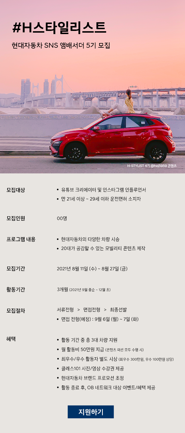 현대자동차 모빌리티 라이프스타일 크리에이터 H-STYLIST 5기 모집