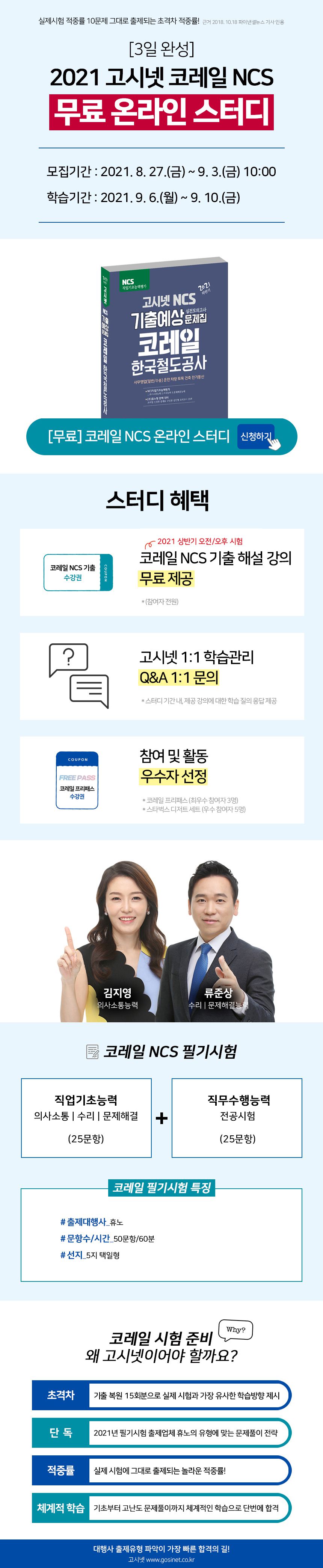 [3일 완성] 2021 하반기 고시넷 코레일 NCS 온라인 스터디