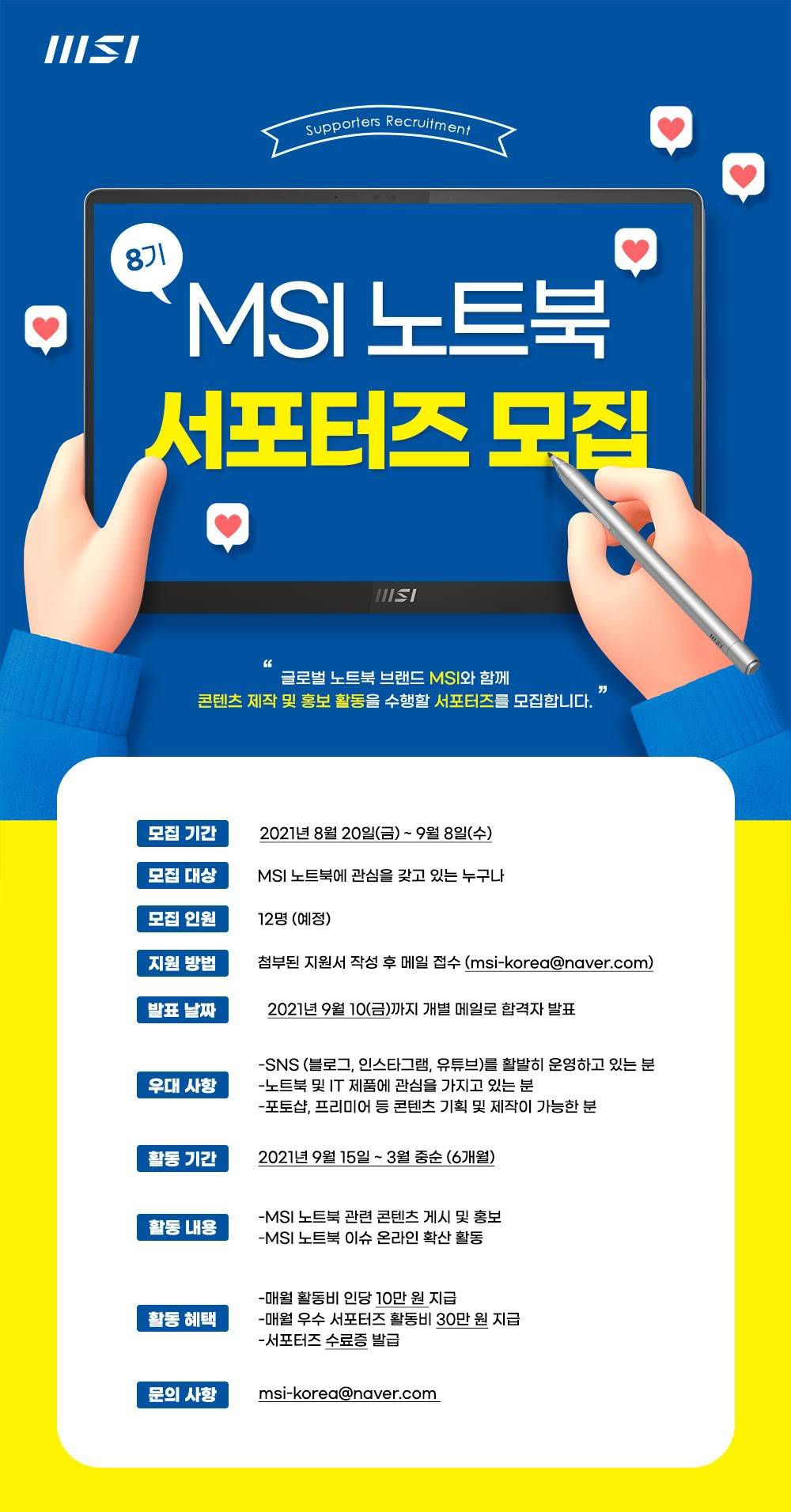 2021 MSI 노트북 서포터즈 8기 모집이 시작되었습니다!