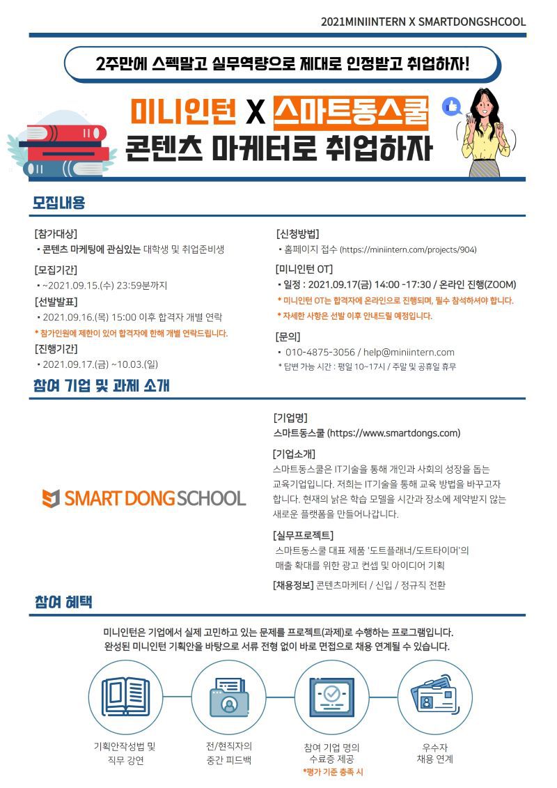 [미니인턴X스마트동스쿨] 실무역량 인증받고, 교육 프로그램 기획/운영자로 취업해요! (~9/15)