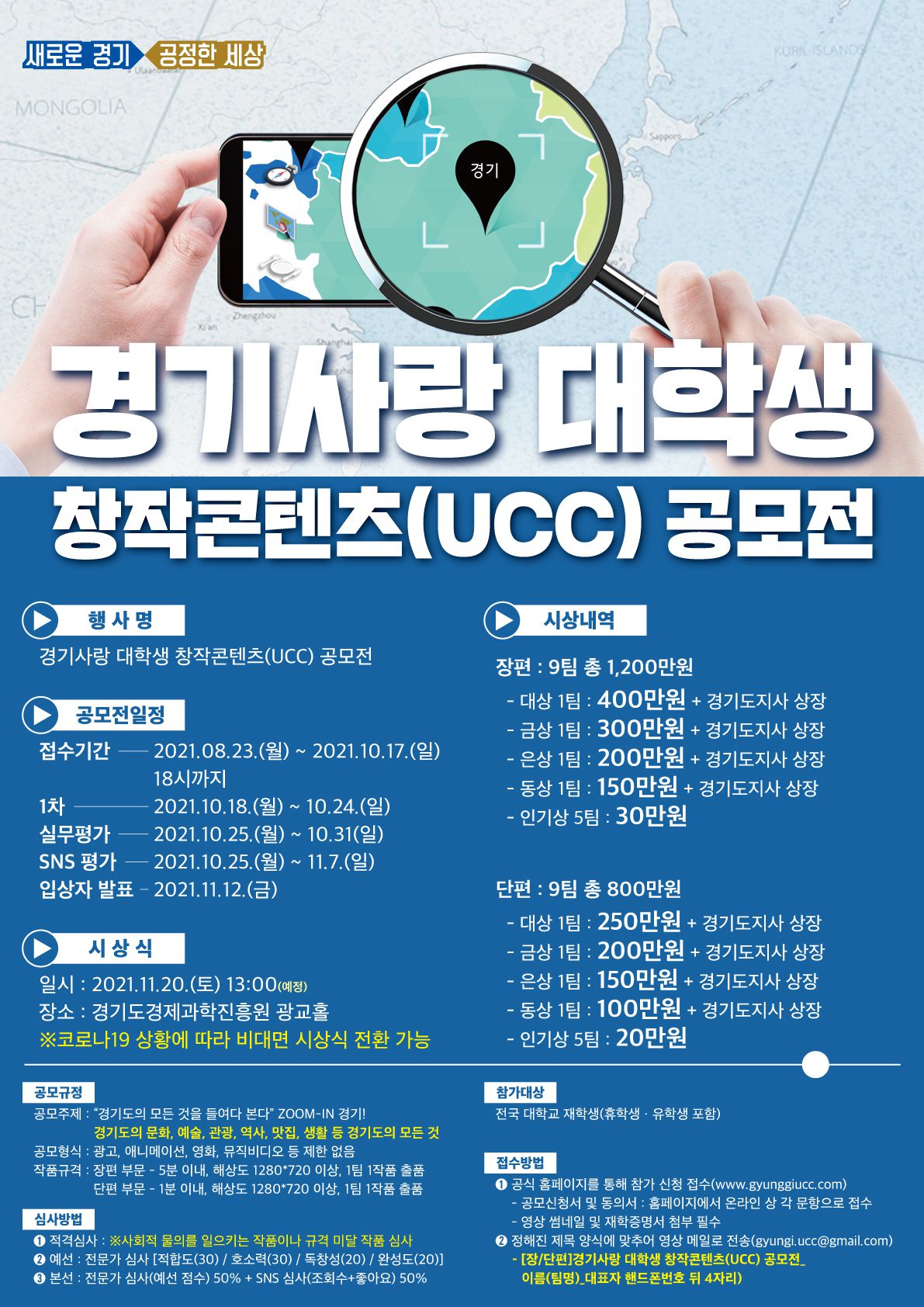 ○ 경기사랑 대학생 창작콘텐츠(UCC_ 공모전 공식 메일 문의 (gyungi.ucc@gmail.com)