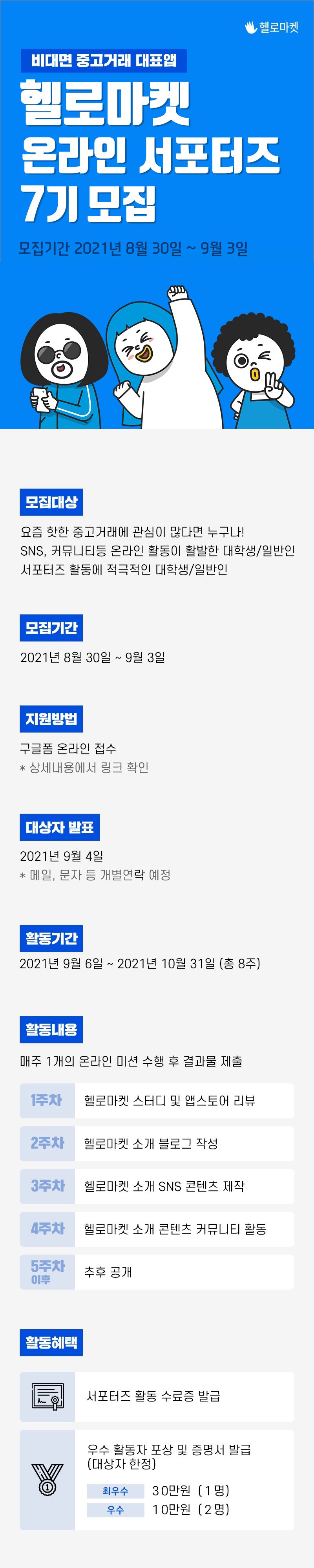 비대면 중고거래 대표앱 「헬로마켓」과 함께 할 온라인 서포터즈를 모집합니다.