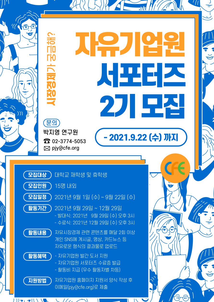 - (문의 및 접수) 박지영 자유기업원 연구원 (pjy@cfe.org, 02-3774-5053)