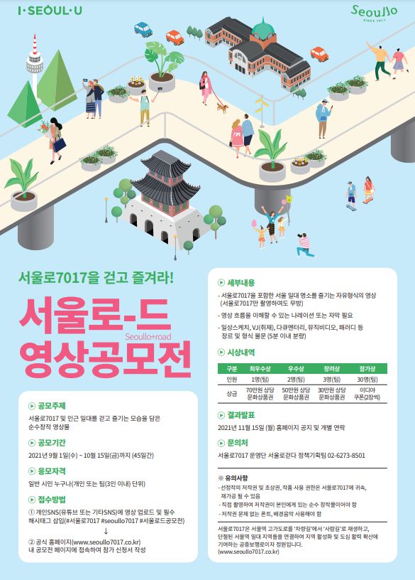 서울로7017이 '서울로-드(Seoullo-road)' 영상 공모전을 진행합니다.