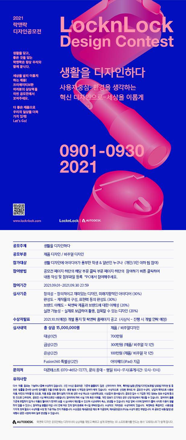 [ 2021 락앤락 디자인 공모전은 오토데스크와 함께합니다. 크레에이티브한 당신의 상상력을 표현해 보세요! ]