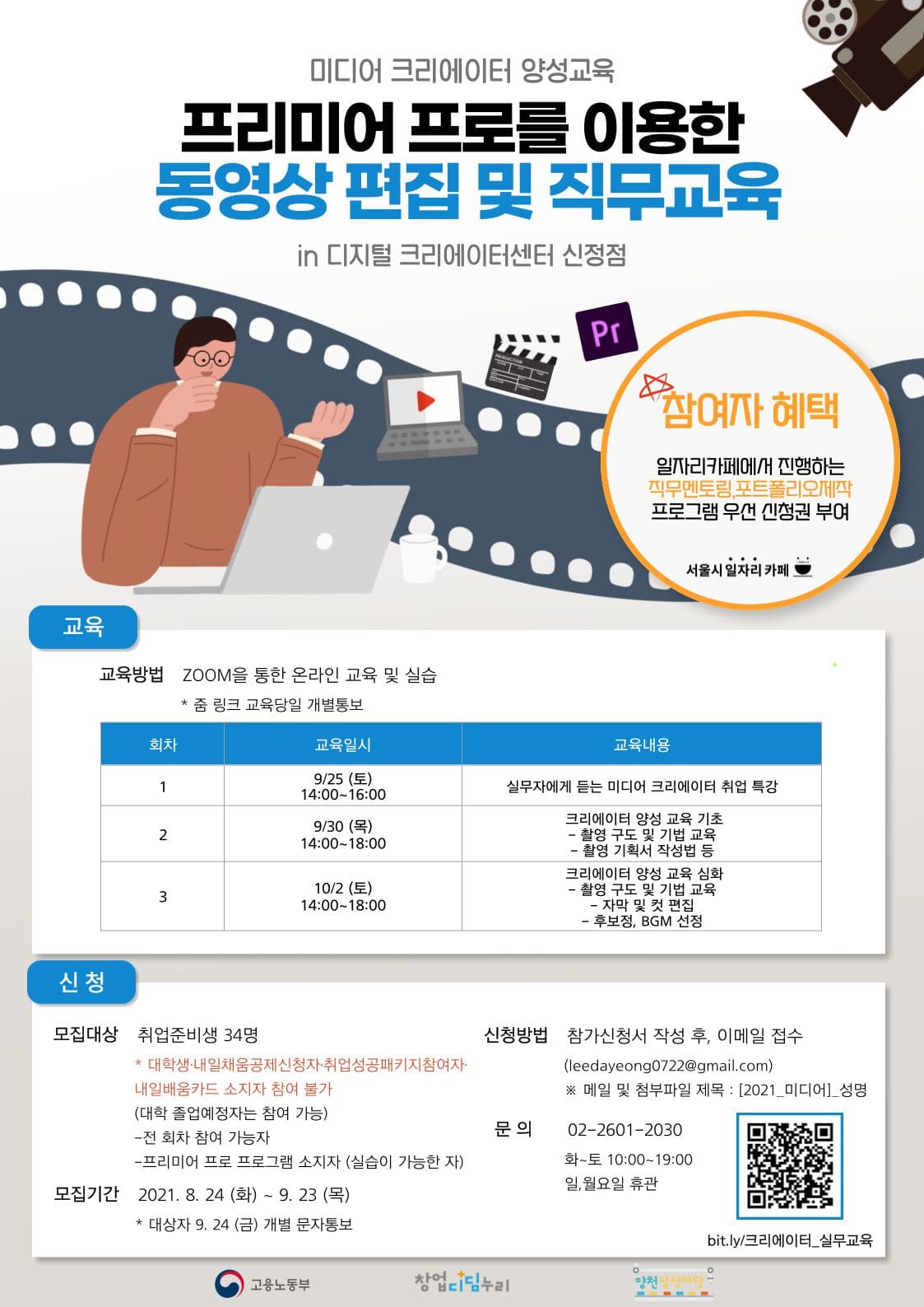 “프리미어 프로를 이용한 동영상 편집 및 직무교육” 영상분야에 관심있는 크리에이터 수강생을 모집합니다 !