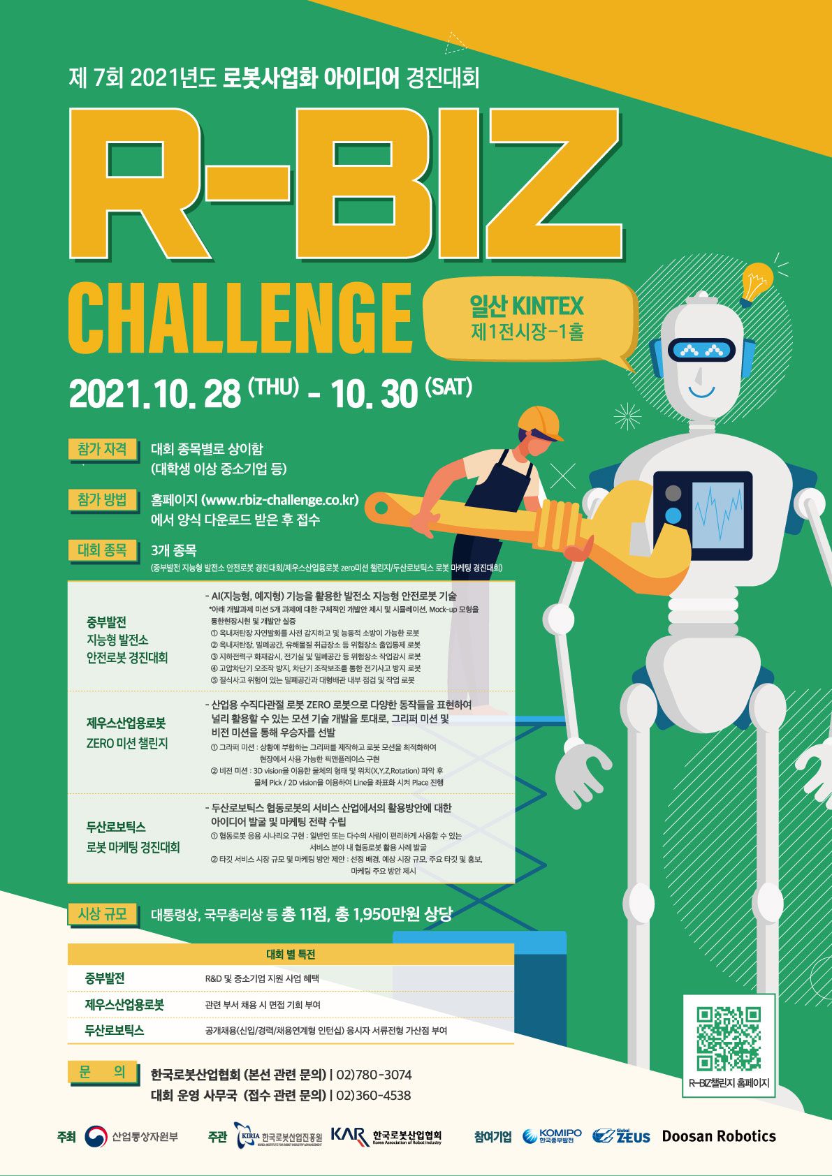 - 대회문의 : 한국로봇산업협회 ☏02-780-3074 / soyoonbae@korearobot.or.kr