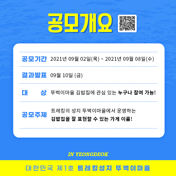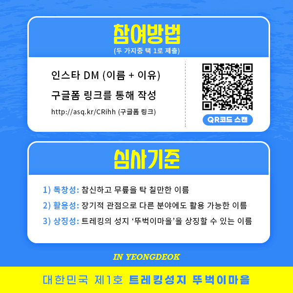 - 공모전 (1명) 당첨자 : 영덕이 웰컴키트 풀세트(10만원 상당)