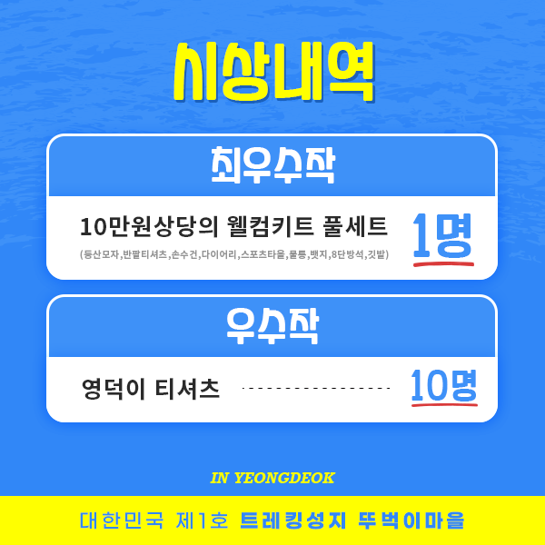 - 우수자 (10명) : 영덕이 반팔 티셔츠 증정