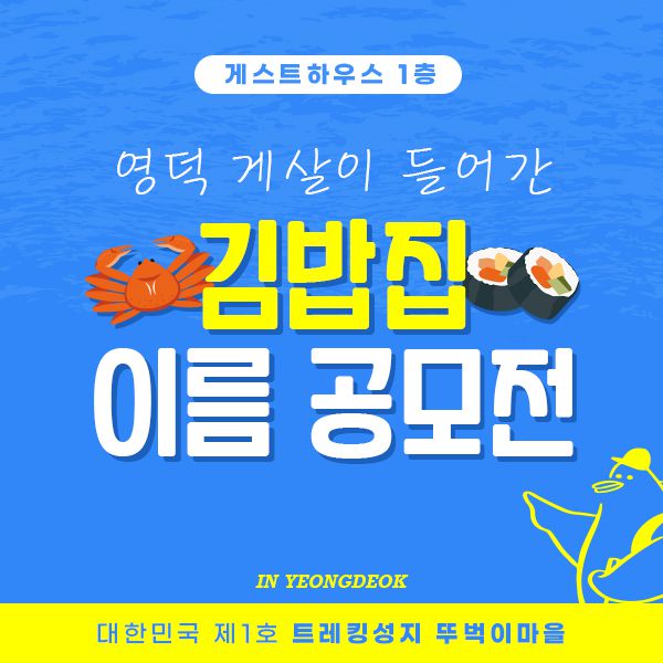 *참고로 영덕의 게를 활용한 '게살김밥' 메뉴를 판매할 계획입니다 :)