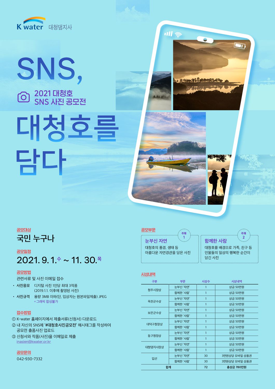 ② 내 자신의 SNS에 ’#대청호사진공모전‘ 해시태그를 작성하여 공모전 출품사진 업로드