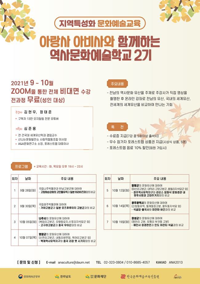 <아랑사아비사와 함께하는 역사문화예술학교 2, 3기 수강생 모집>