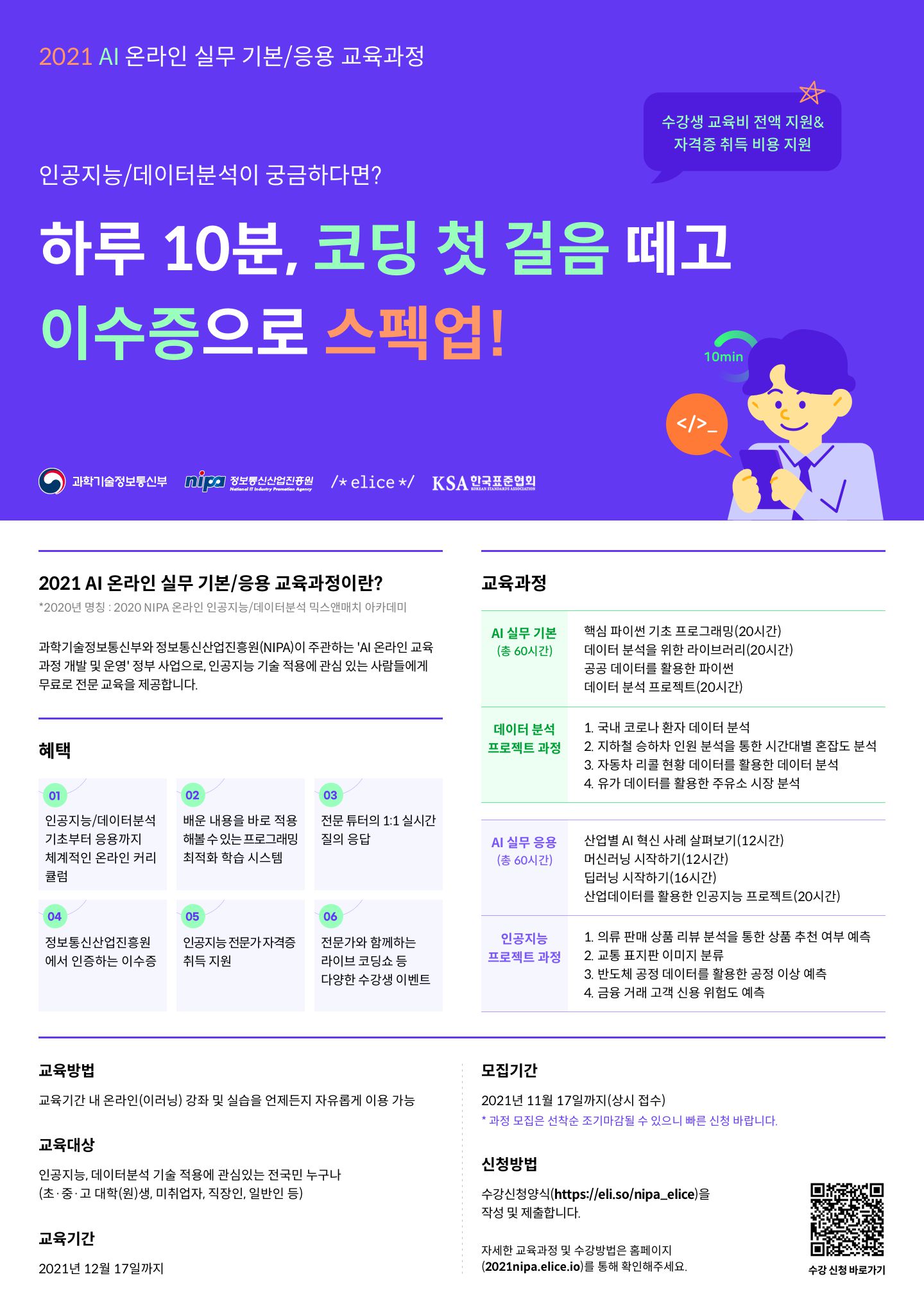 ๐Ÿ”ฅ์ „๊ตญ๋ฏผ ๋ฌด๋ฃŒ๐Ÿ”ฅํ•˜๋ฃจ 10๋ถ„, ์ฝ”๋”ฉ ์ฒซ ๊ฑธ์Œ ๋–ผ๊ณ  ์ด์ˆ˜์ฆ์œผ๋กœ ์ŠคํŽ™์—…! | 2021 AI ์˜จ๋ผ์ธ ์‹ค๋ฌด ๊ต์œก๊ณผ์ • ๋ชจ์ง‘