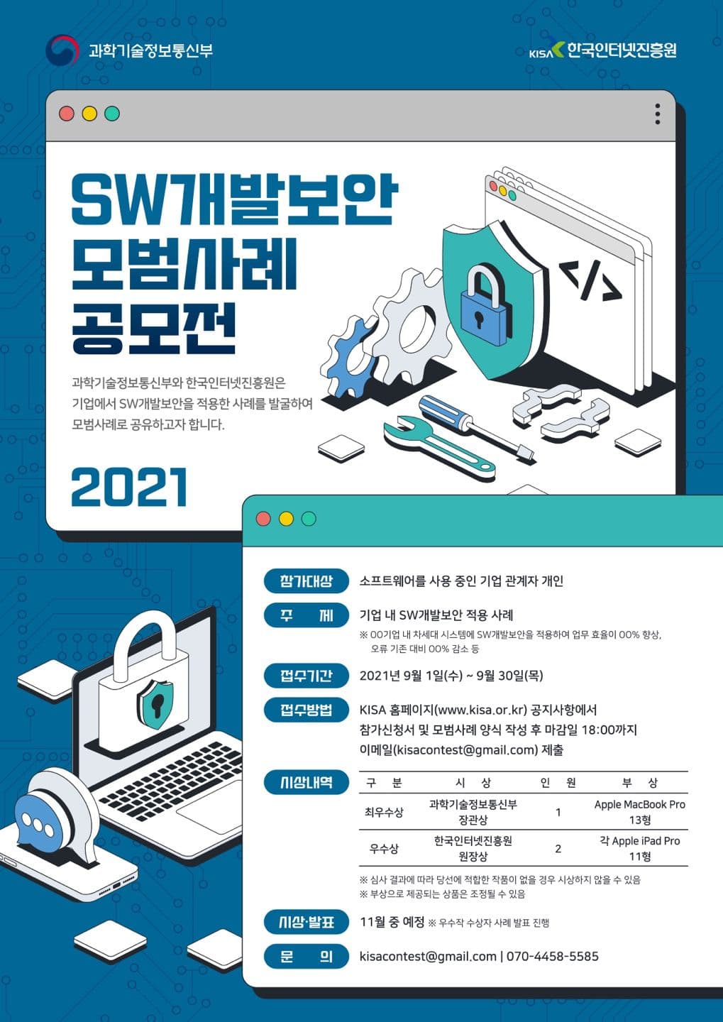 과학기술정보통신부와 한국인터넷진흥원이 ‘SW개발보안 모범사례 공모전’을 개최합니다!
