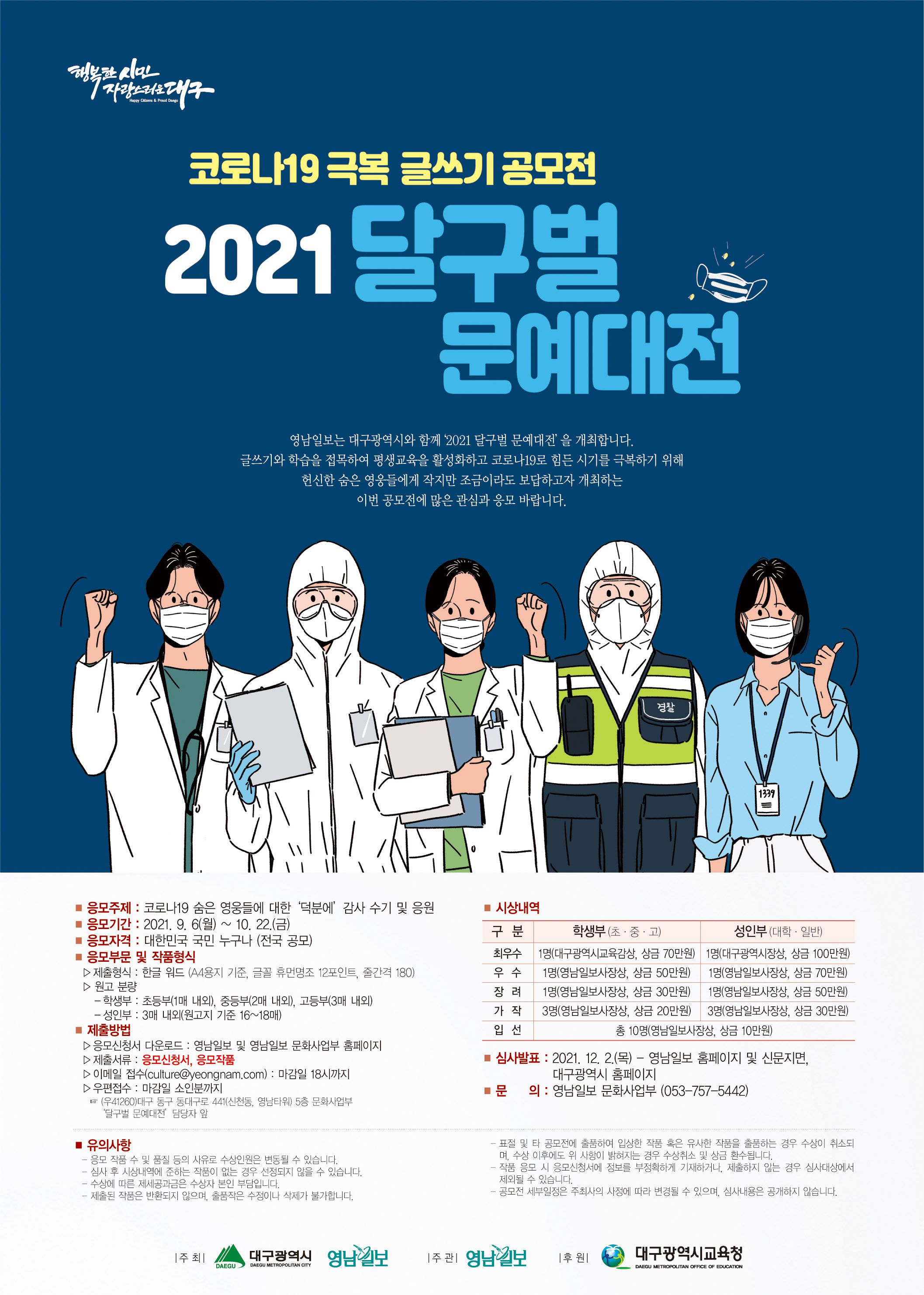 ❍ 심사발표 : 2021. 12. 2.(목) - 영남일보 홈페이지 및 신문지면, 대구광역시 홈페이지