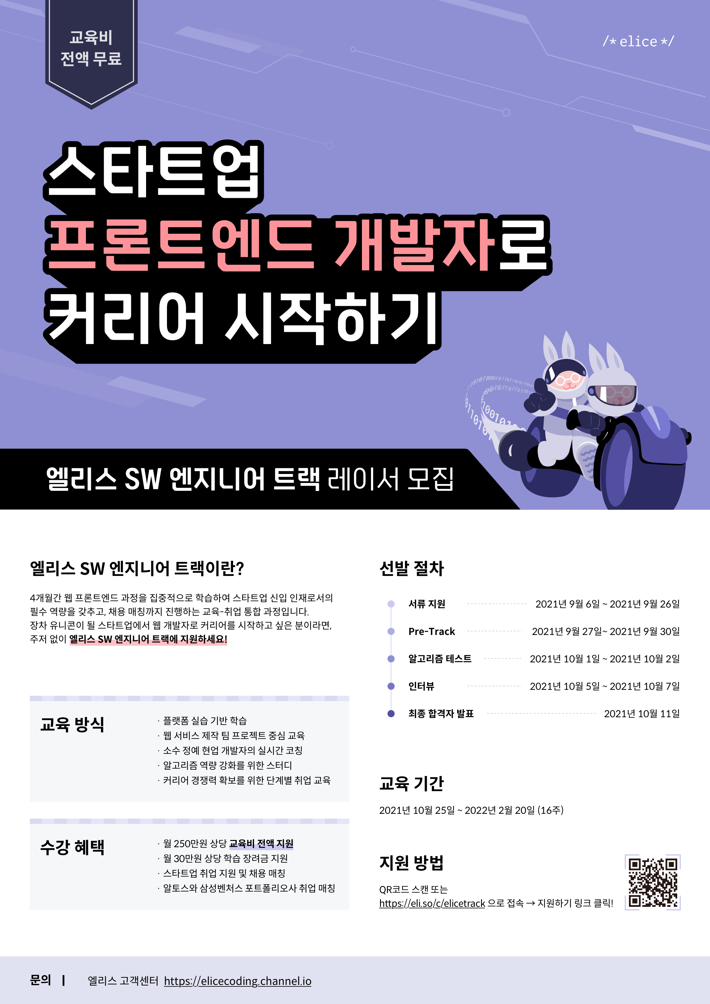 놓치지 말고 👉엘리스 SW 엔지니어 트랙에 지원하세요!