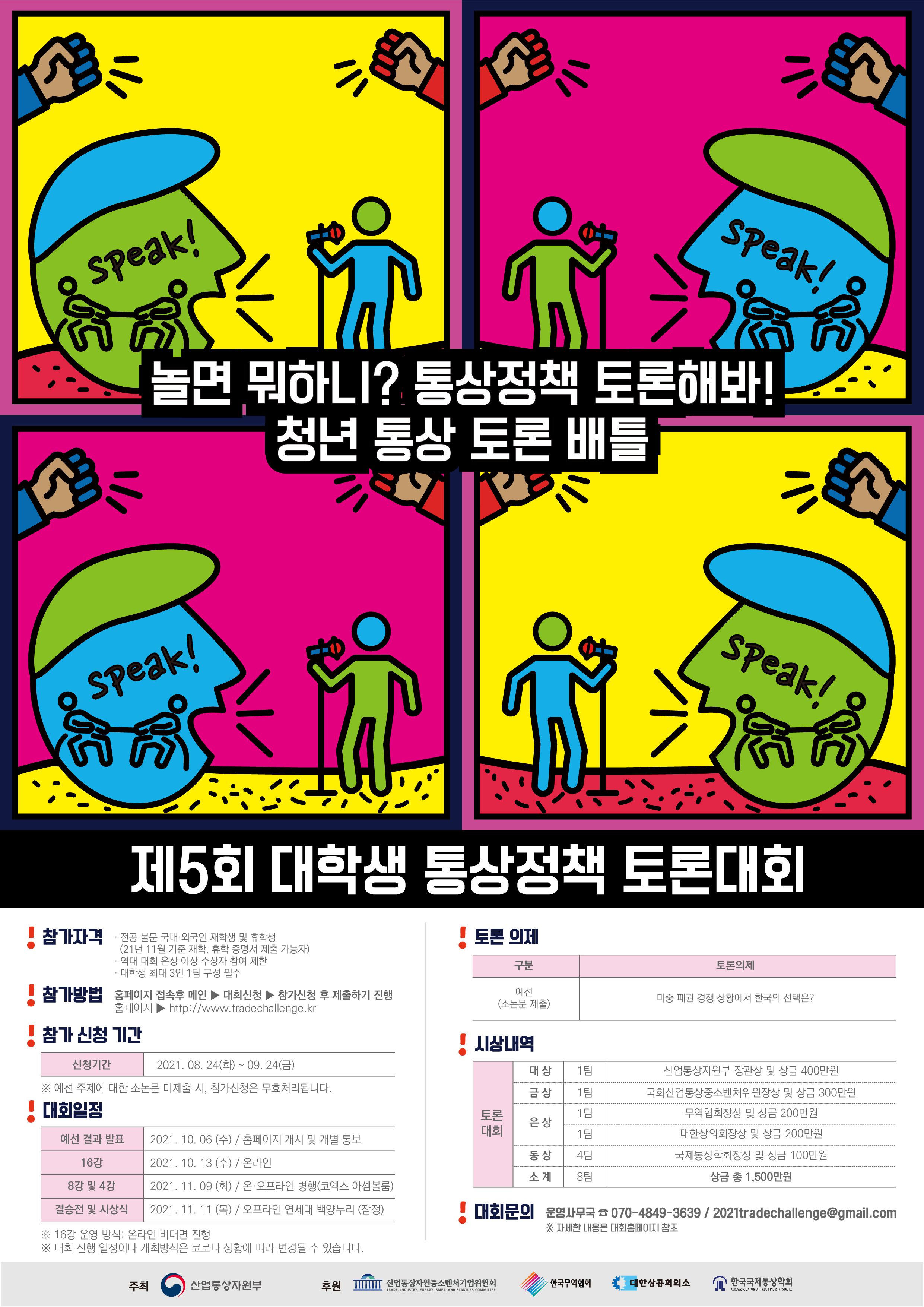 산업통상자원부가 주최하는 ‘제5회 대학생 통상정책 토론대회’ 참가자를 모집합니다.