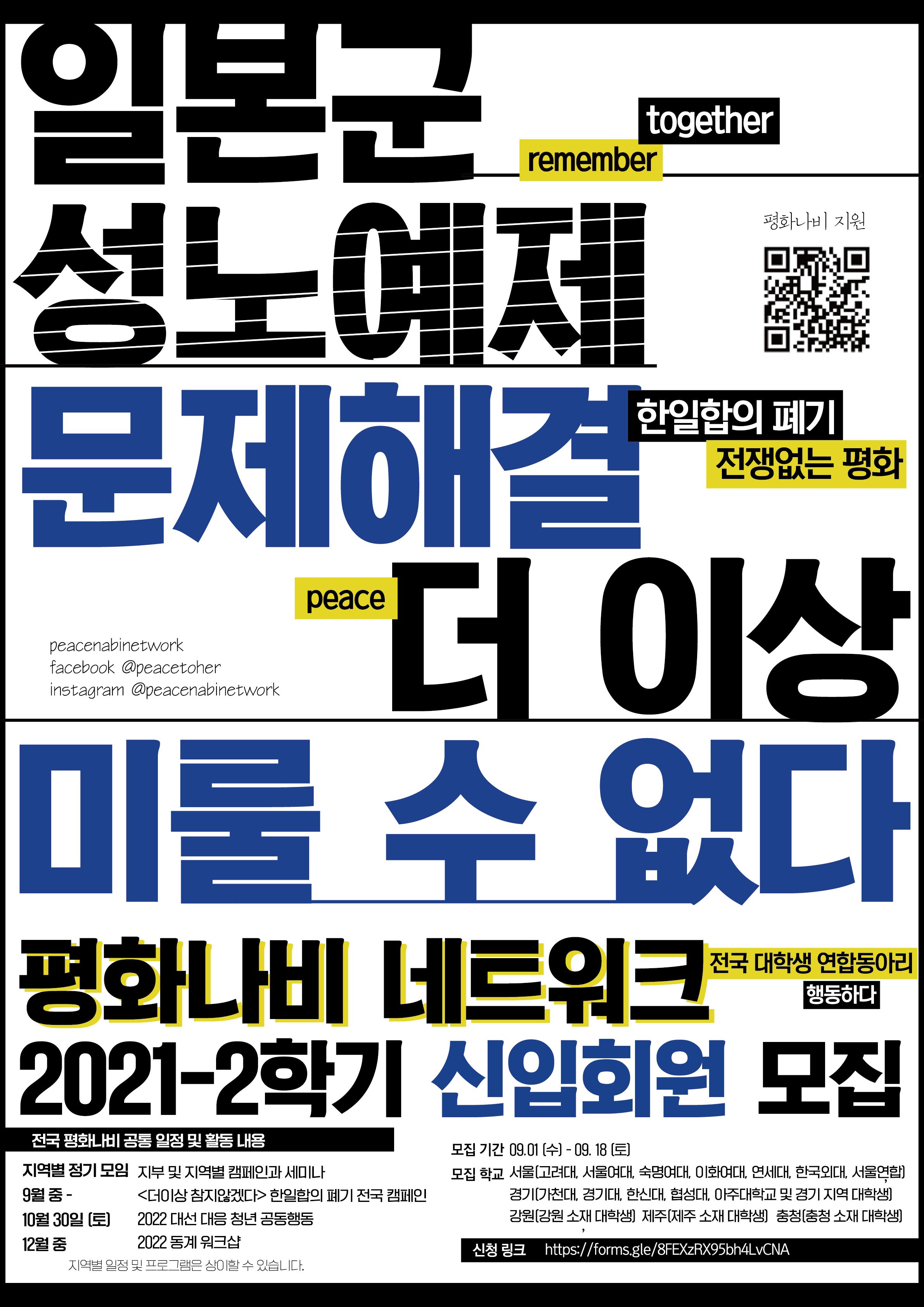 일본군 성노예제 문제의 정의로운 해결을 위해 활동하는 전국 대학생 연합동아리 평화나비 네트워크 신입회원을 모집합니다!