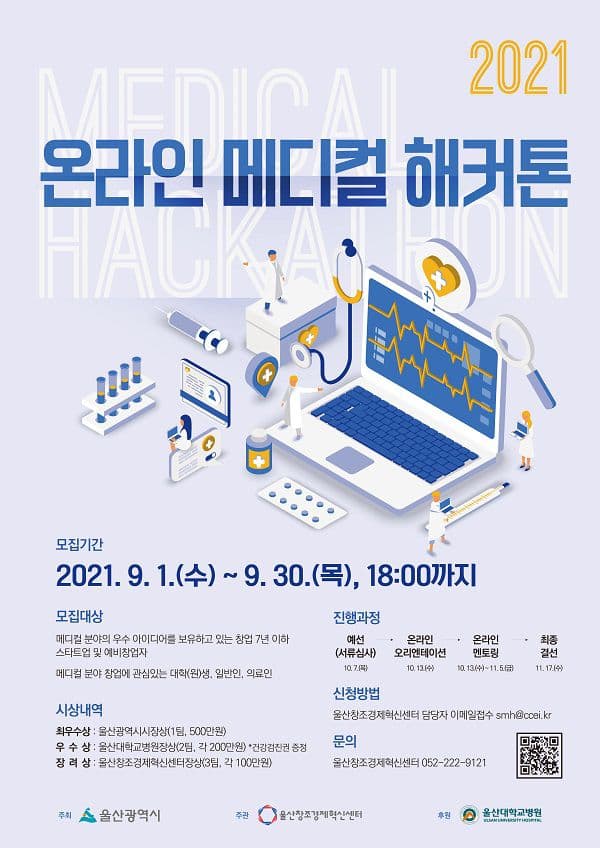 「2021 온라인 메디컬(Medical) 해커톤」을 개최하오니 많은 참여 바랍니다.
