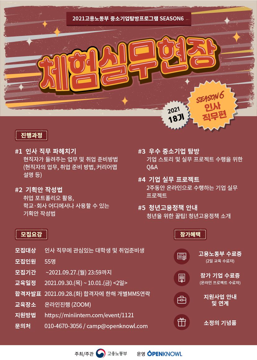 그런 여러분들을 위해 준비한 체험실무현장 18기 인사 직무편!