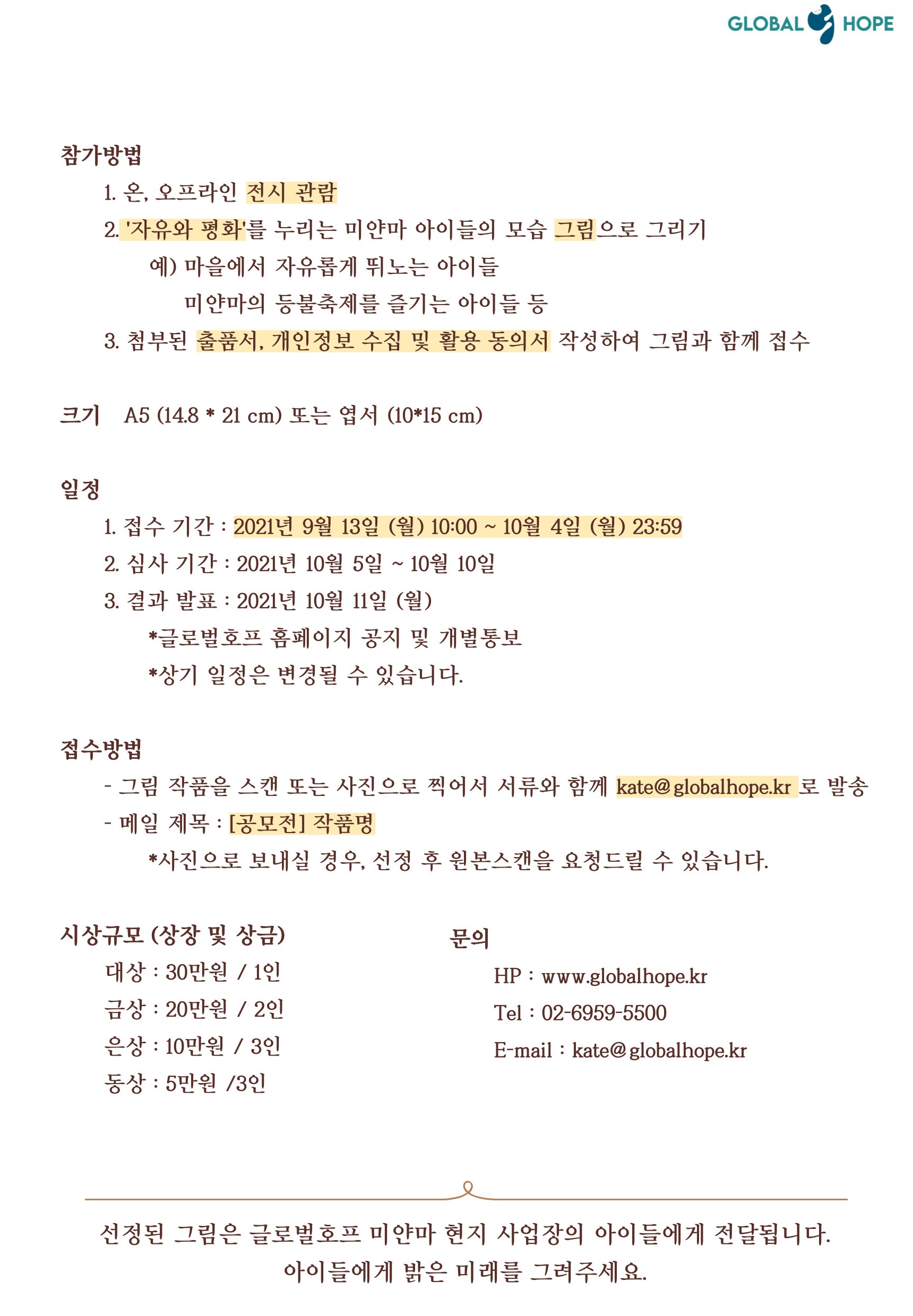 온라인 전시: http://www.globalhope.kr/exhibition