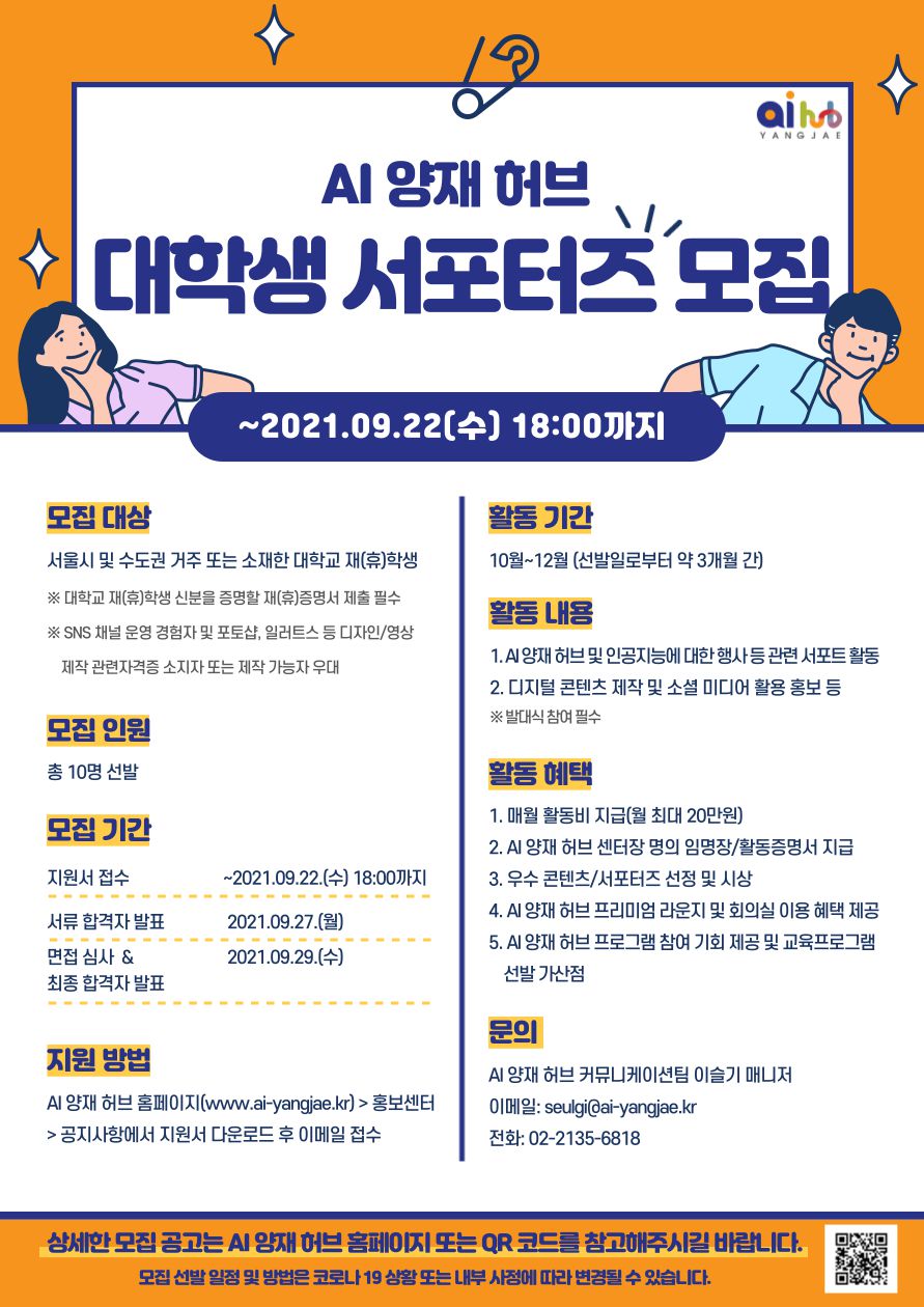 - 지원서 접수: ~2021.09.22.(수) 18:00까지
