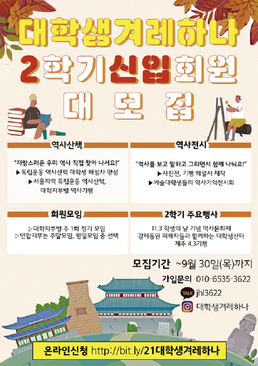 안녕하세요! 대학생 역사 연합동아리에서 2021년 2학기 신입회원을 모집합니다.