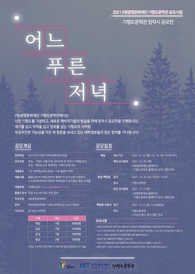 2021 (재)광명문화재단 기형도문학관 공모사업 기형도문학관 창작시 공모전 “어느 푸른 저녁”