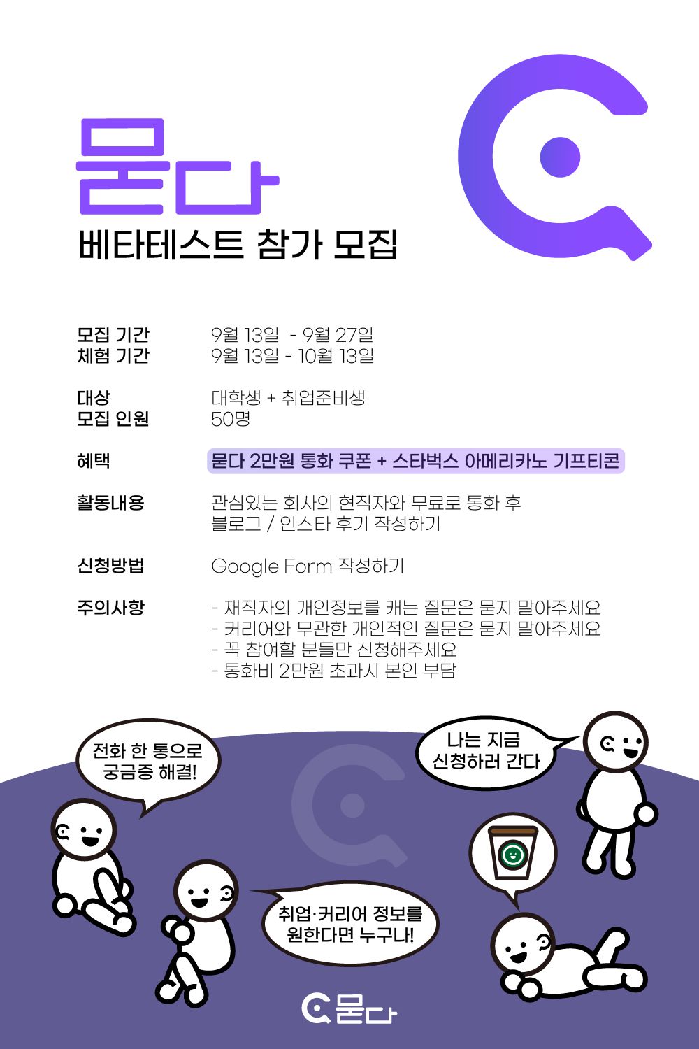 안녕하세요, 커리어 익명 통화 플랫폼 묻다입니다!