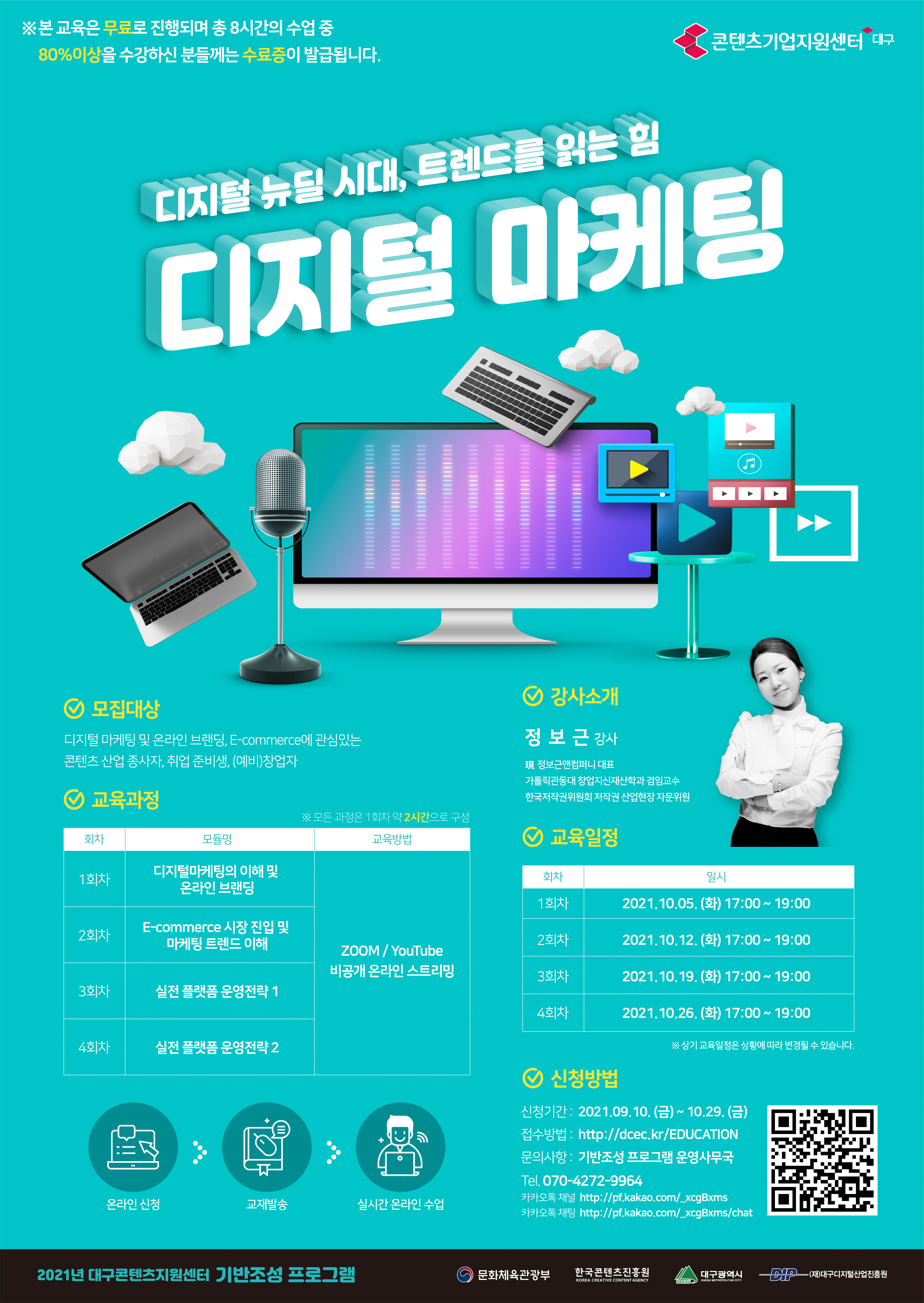 가. 사업명 : 2021 대구콘텐츠기업지원센터 기반조성 프로그램_콘텐츠 산업 관련 교육(디지털마케팅/라이브커머스/콘텐츠디자인)