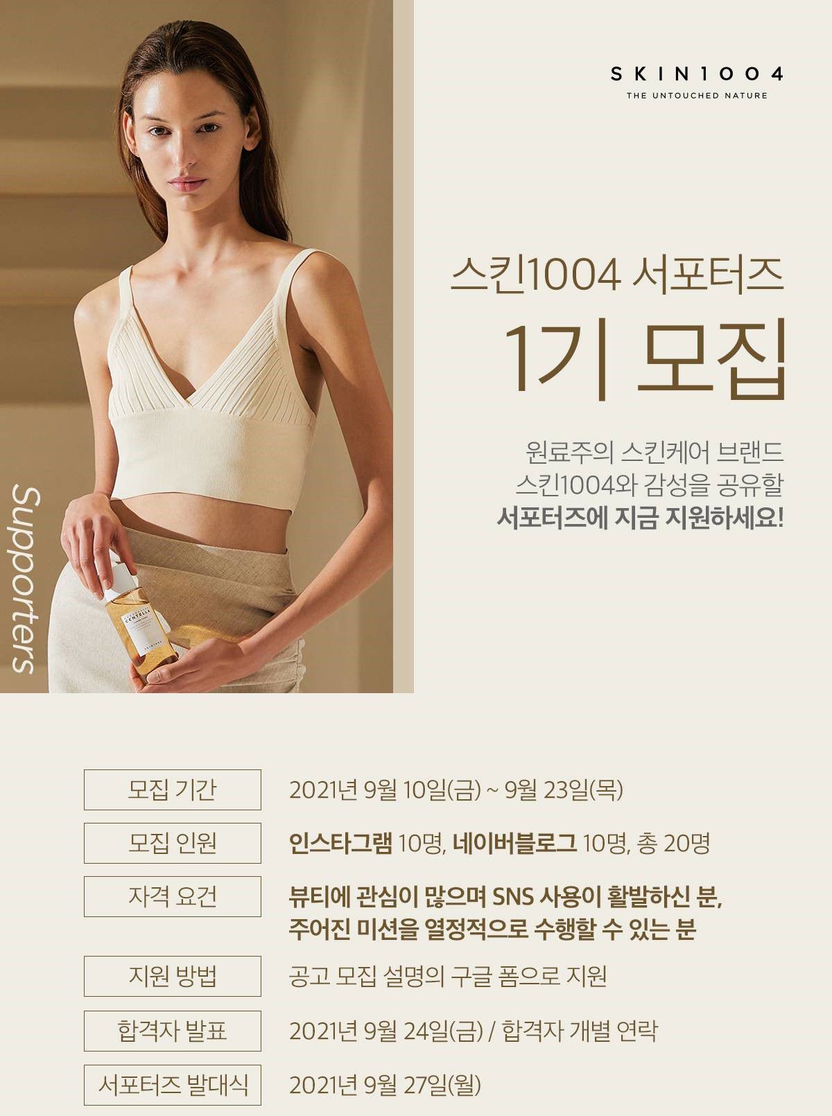 원료주의 스킨케어 브랜드, 스킨1004와 감성을 공유할 서포터즈에 지금 지원하세요!