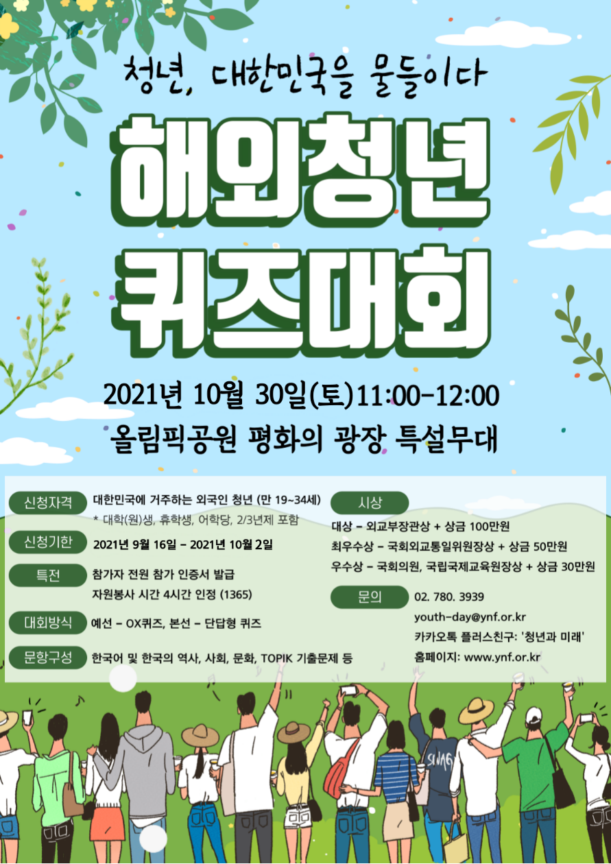 ๐2021 ๋ํ๋ฏผ๊ตญ ์ฒญ๋ ์ ๋ ํด์ธ์ฒญ๋ ํด์ฆ๋ํ ์ฐธ๊ฐ์ ์ถ๊ฐ๋ชจ์ง๐