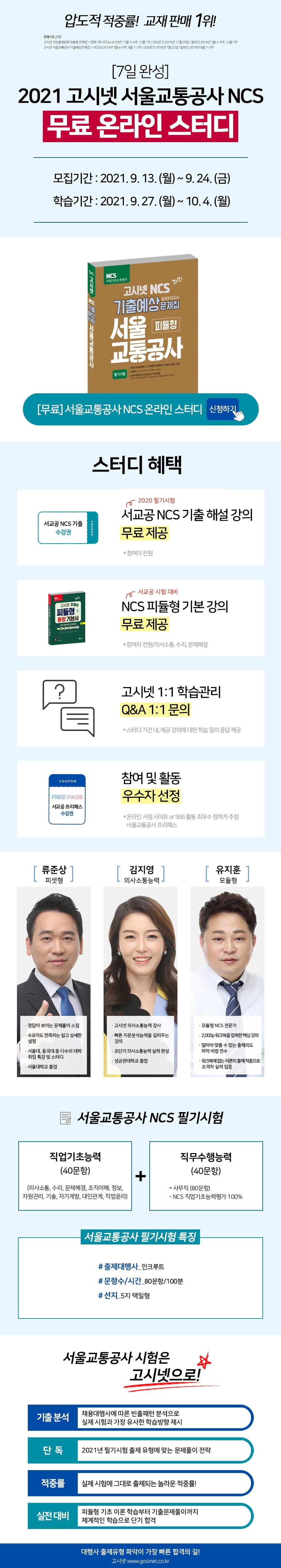 [7일 완성] 2021 서울교통공사 NCS 무료 온라인스터디(~9.24.)