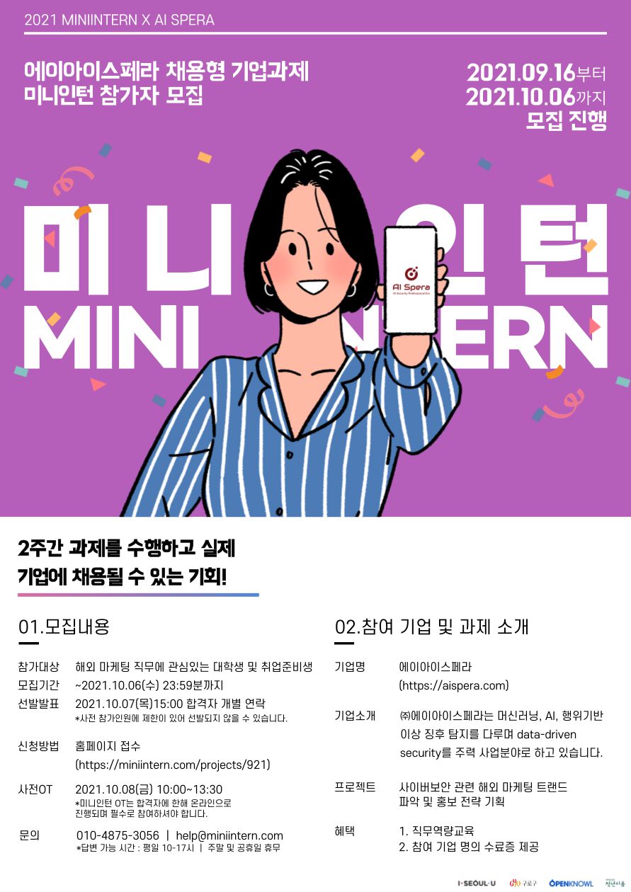 *본 과제형 미니인턴 참가시 사전OT 참가는 필수 사항입니다.