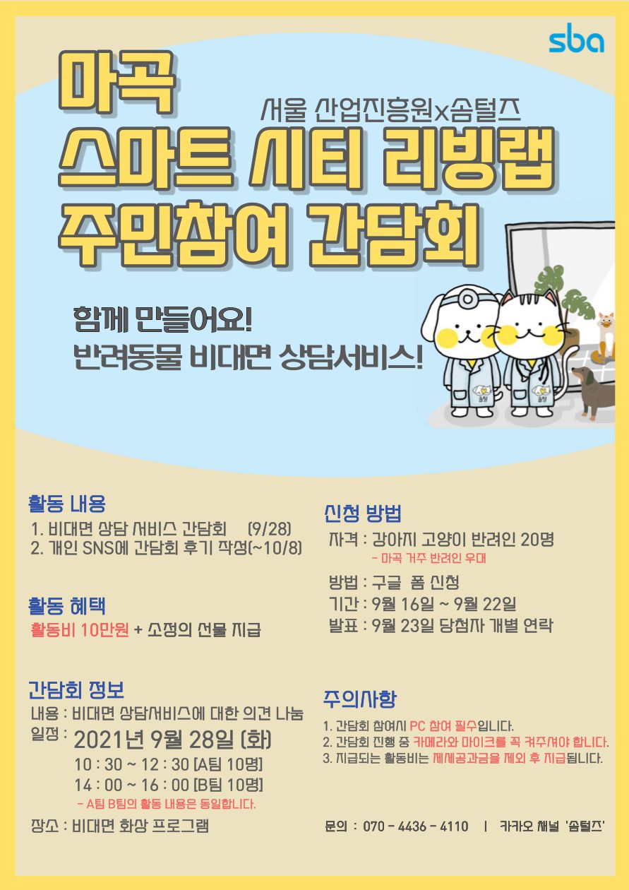 반려동물 헬스케어 플랫폼 솜털즈에서 서울 산업진흥원과 함께 반려동물 비대면 상담서비스를 만들고 있습니다!