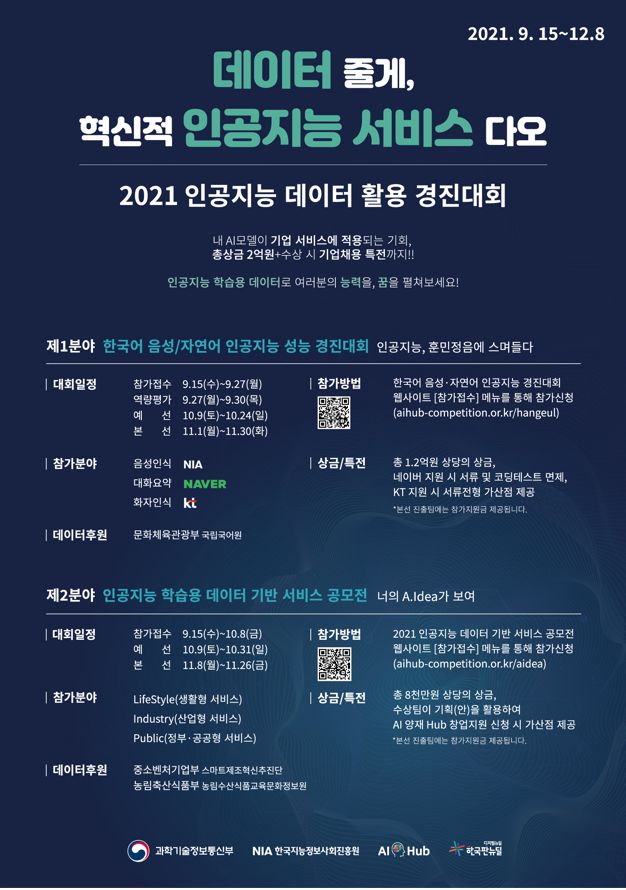 [2021 인공지능 데이터 활용 경진대회] 참가자를 모집합니다.