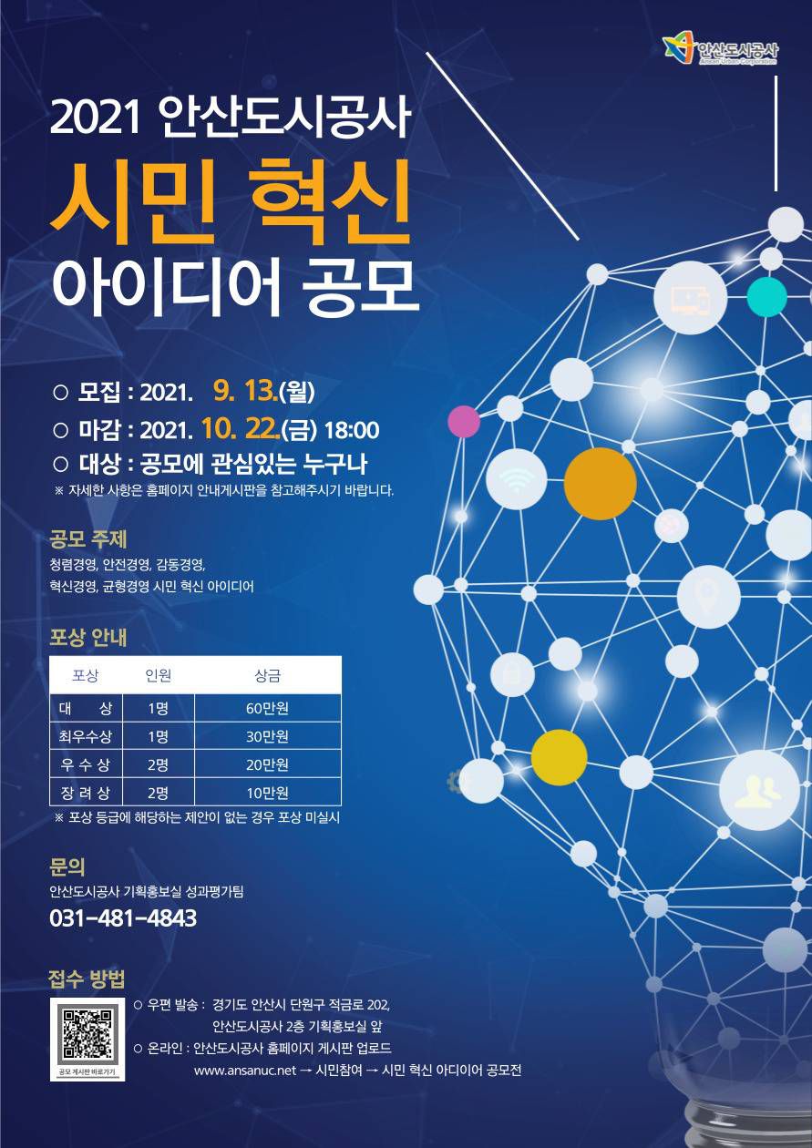 - 온라인 : 안산도시공사 시민제안 공모전 게시판 업로드