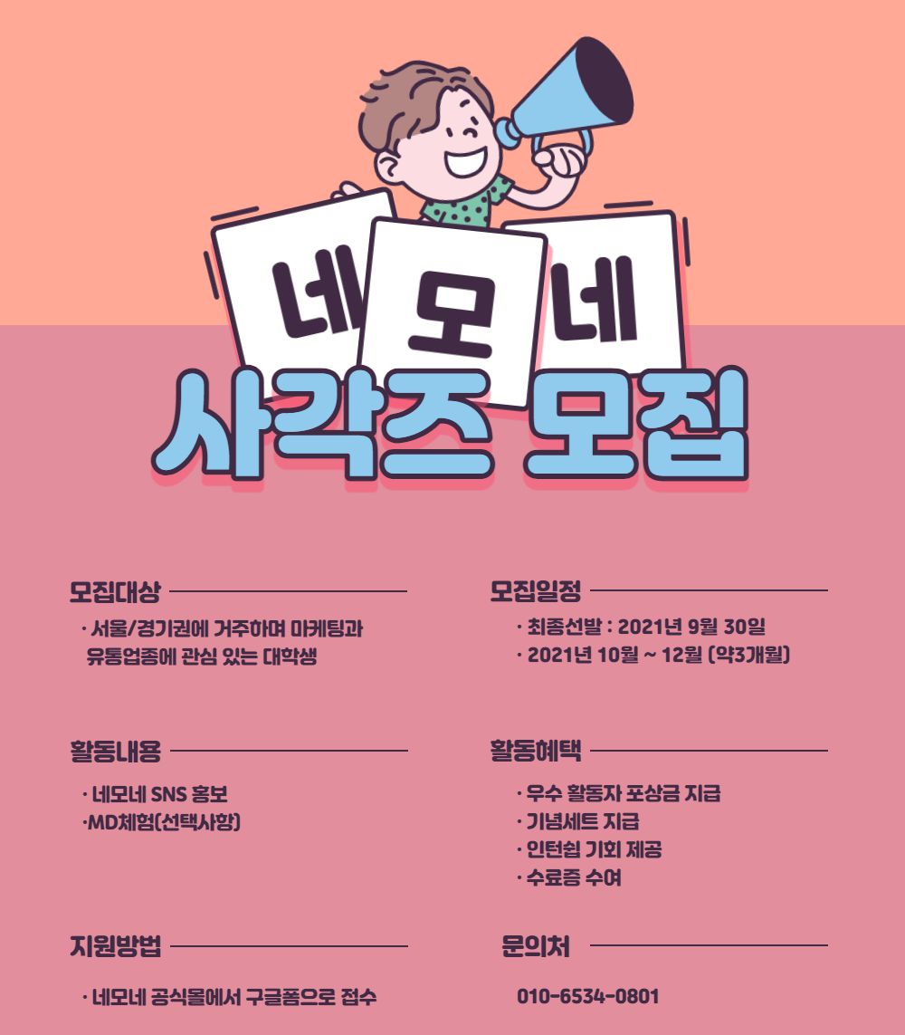 네모네 SNS 홍보 및 MD체험(MD체험의 경우 선택사항)