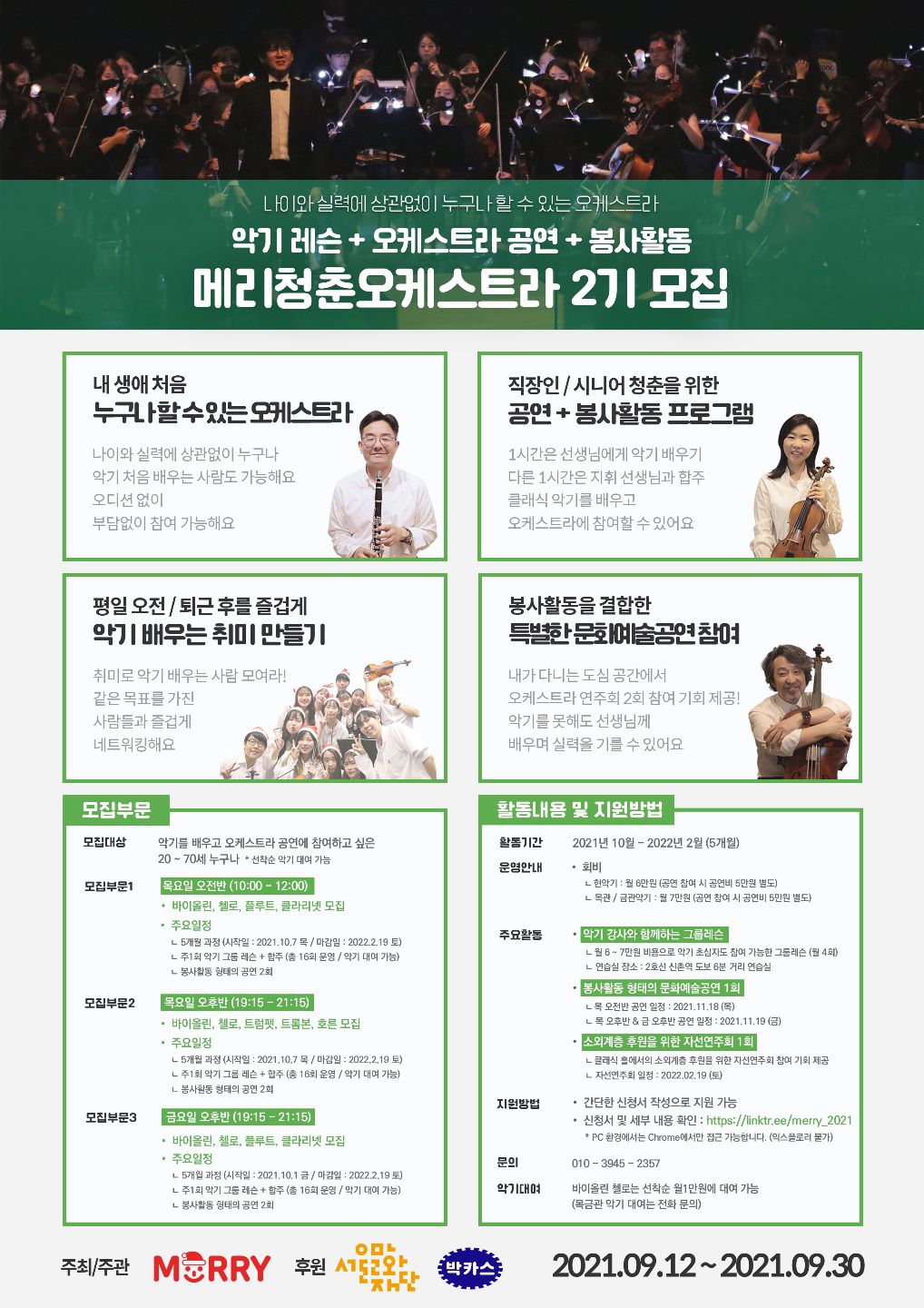 ๊ธฐ๋ฅผ ๋ฐฐ์ฐ๊ณ ์ค์ผ์คํธ๋ผ ๊ณต์ฐ์ ์ฐธ์ฌ๋ฅผ ํฌ๋งํ๋ 20๋ ์ด์ ์ฑ์ธ ๋๊ตฌ๋