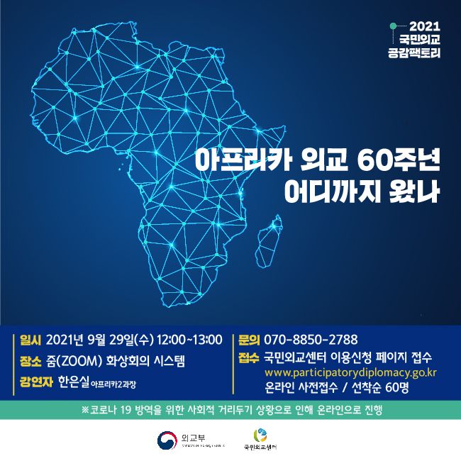 “아프리카 외교 60주년 어디까지 왔나” 를 주제로 국민외교 공감팩토리를 개최할 예정입니다.