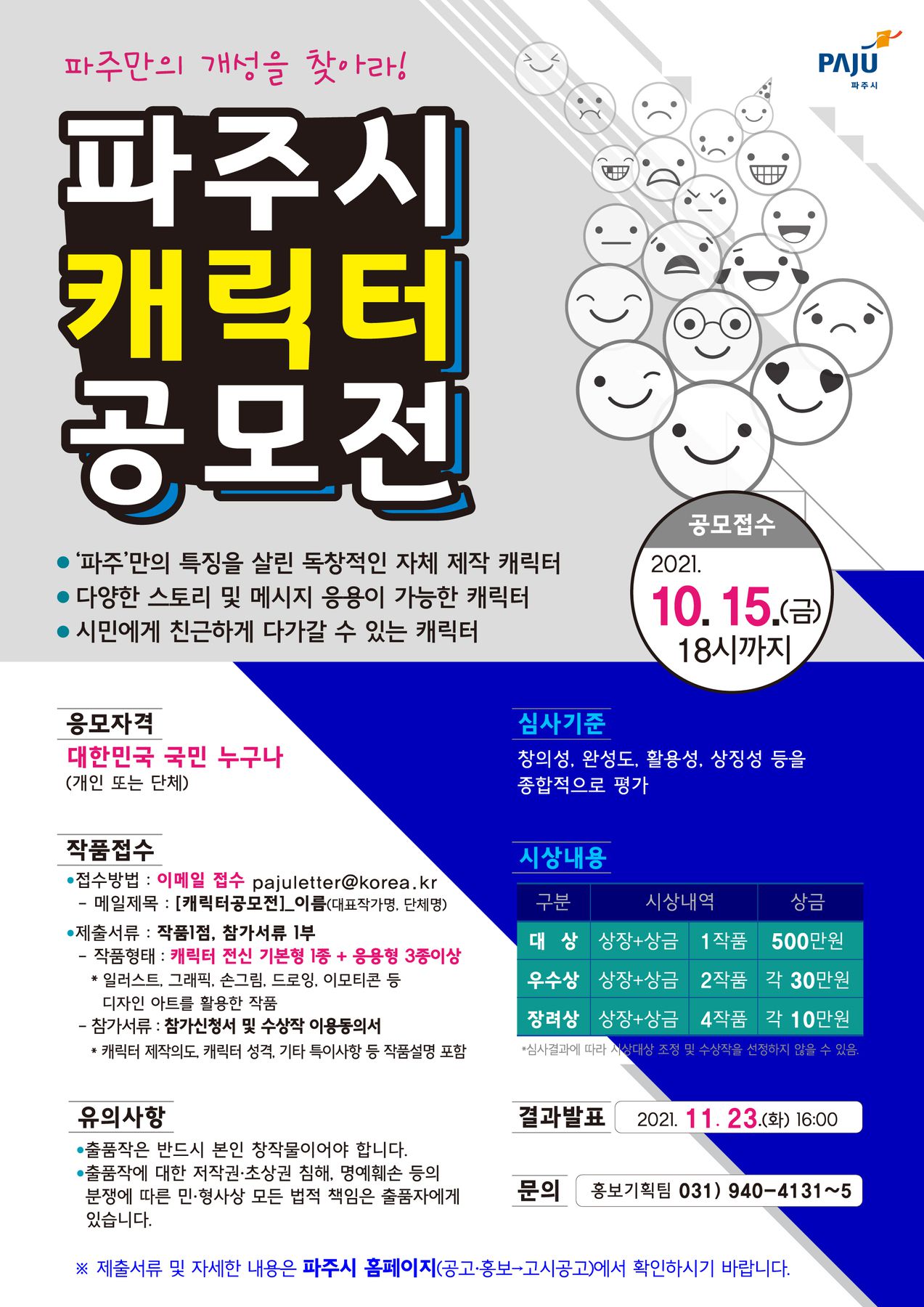 - 2021. 10. 15(금) 18시까지 pajuletter@korea.kr로 제출된 응모서류에 한함