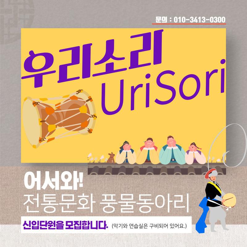 🎼전통문화 풍물 동아리 UriSori 우리소리에 함께할 신입단원 모여라🎶